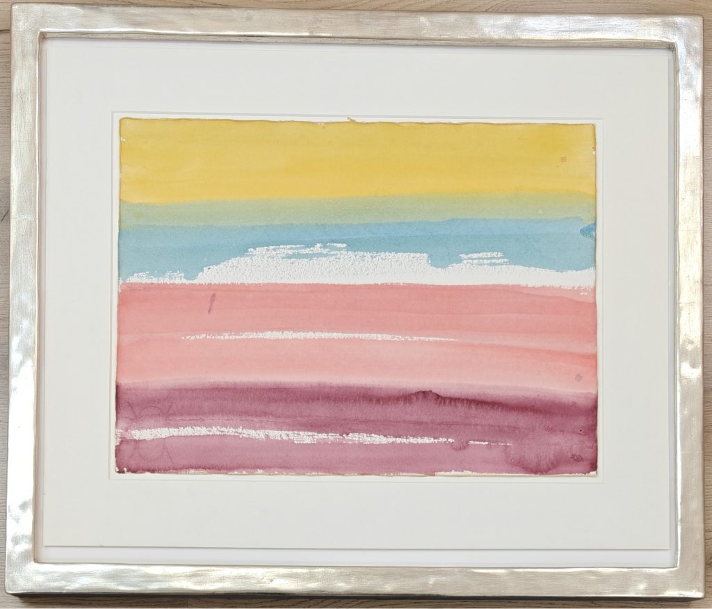 Uecker-Aquarell Aquarell aus dem Jahr 1991. Verso handsigniert und datiert. Blattmaße 37x51cm. Mit Weißgoldrahmen und Museumsglas 62×73 cm