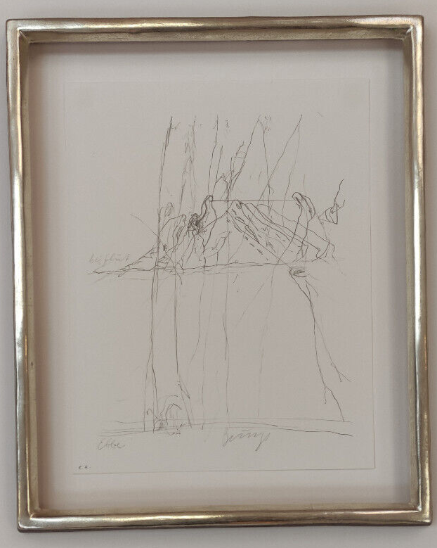 Originallithografie aus der Mappe „Zeichnungen zu Leonardo“ Handsigniert mit Bleistift auf festem Karton 29×21 cm Bezeichnet e/a epreuve d’artiste (Probedruck des Künstlers) Mit Blattgoldrahmen (übereck verarbeitet-handvergoldet) ca. 43×33 cm staubdicht versiegelt.
