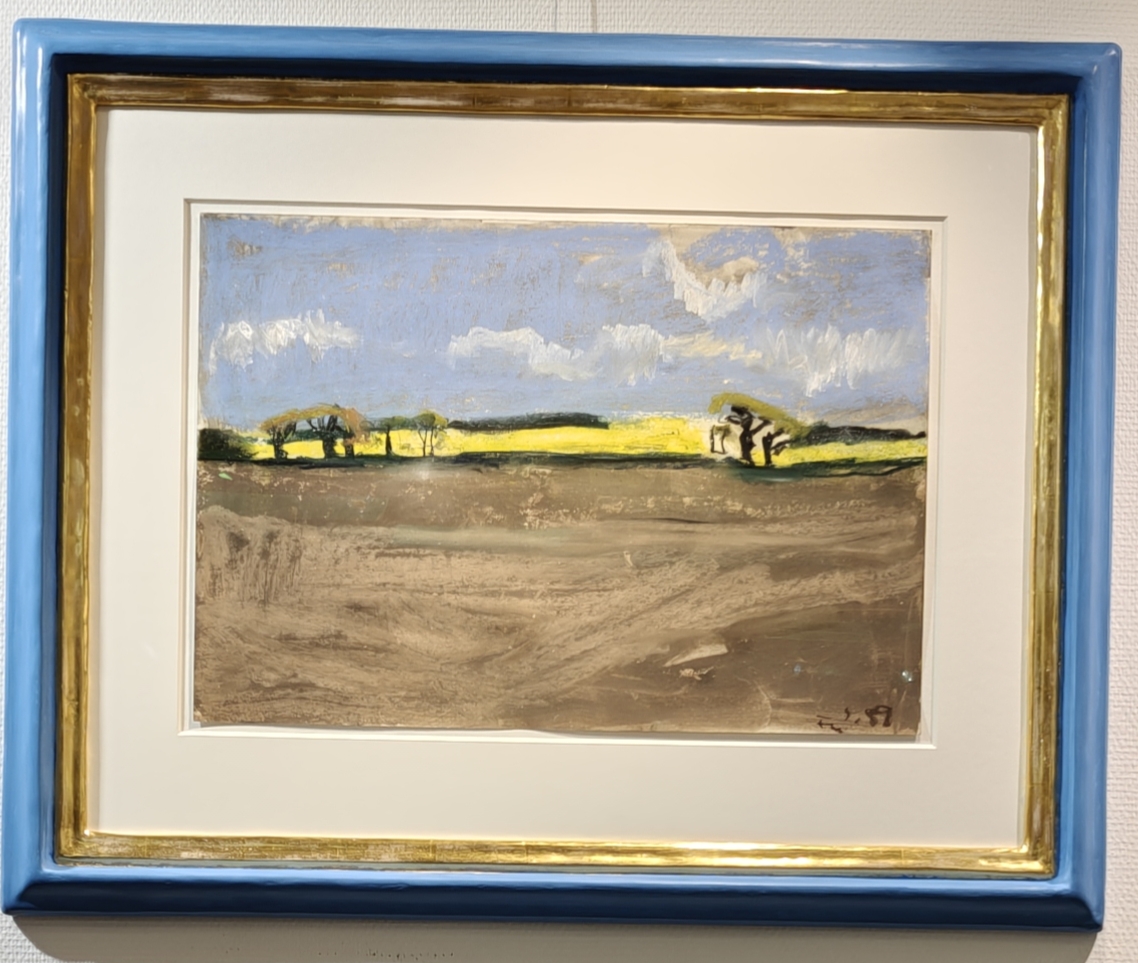 Aquarell-Ölkreide mit Blattgoldrahmen mit Museumsglas 75×90 cm