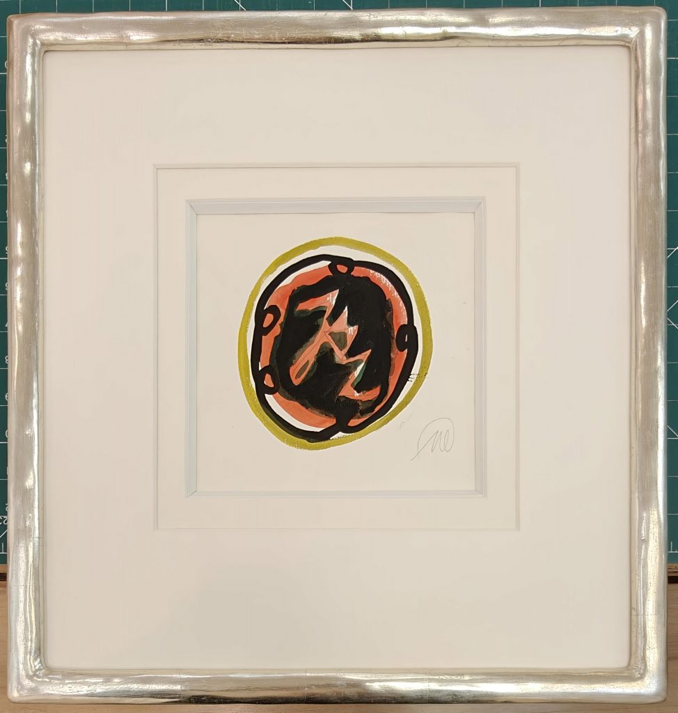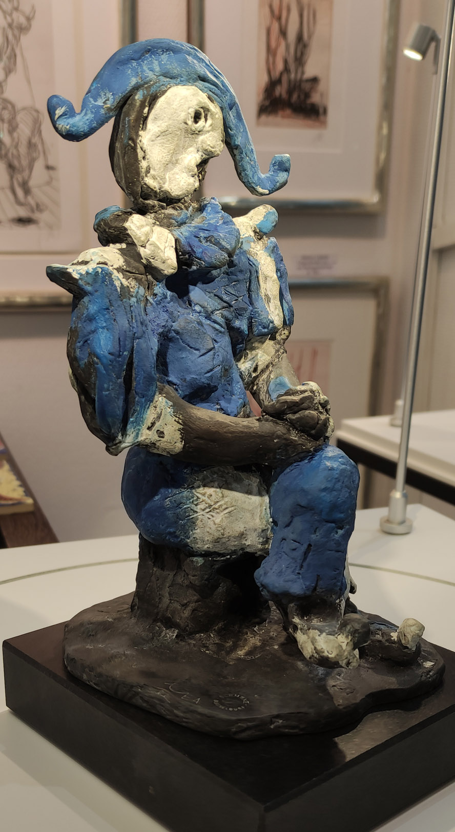 Aktuell verfügbar Lüpertz, „Harlekin“ Bronze- handbemalt-Höhe ca. 26 cm Lüpertz -Aquarell-„Jazz-Rally“ Düsseldorf- mit Weißgoldrahmen 43×41 cm und mit Museumsglas