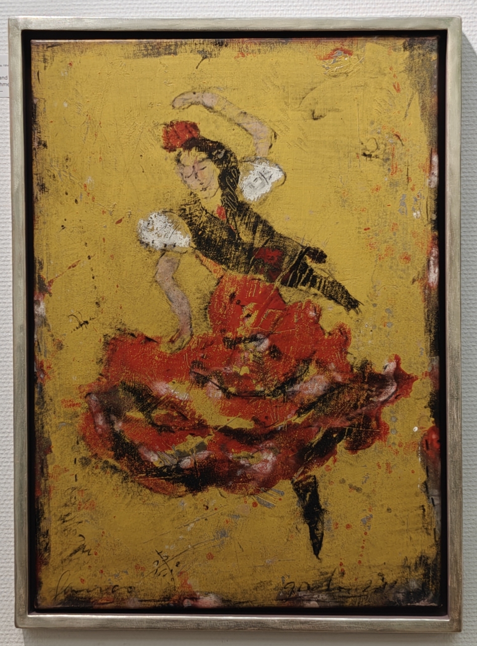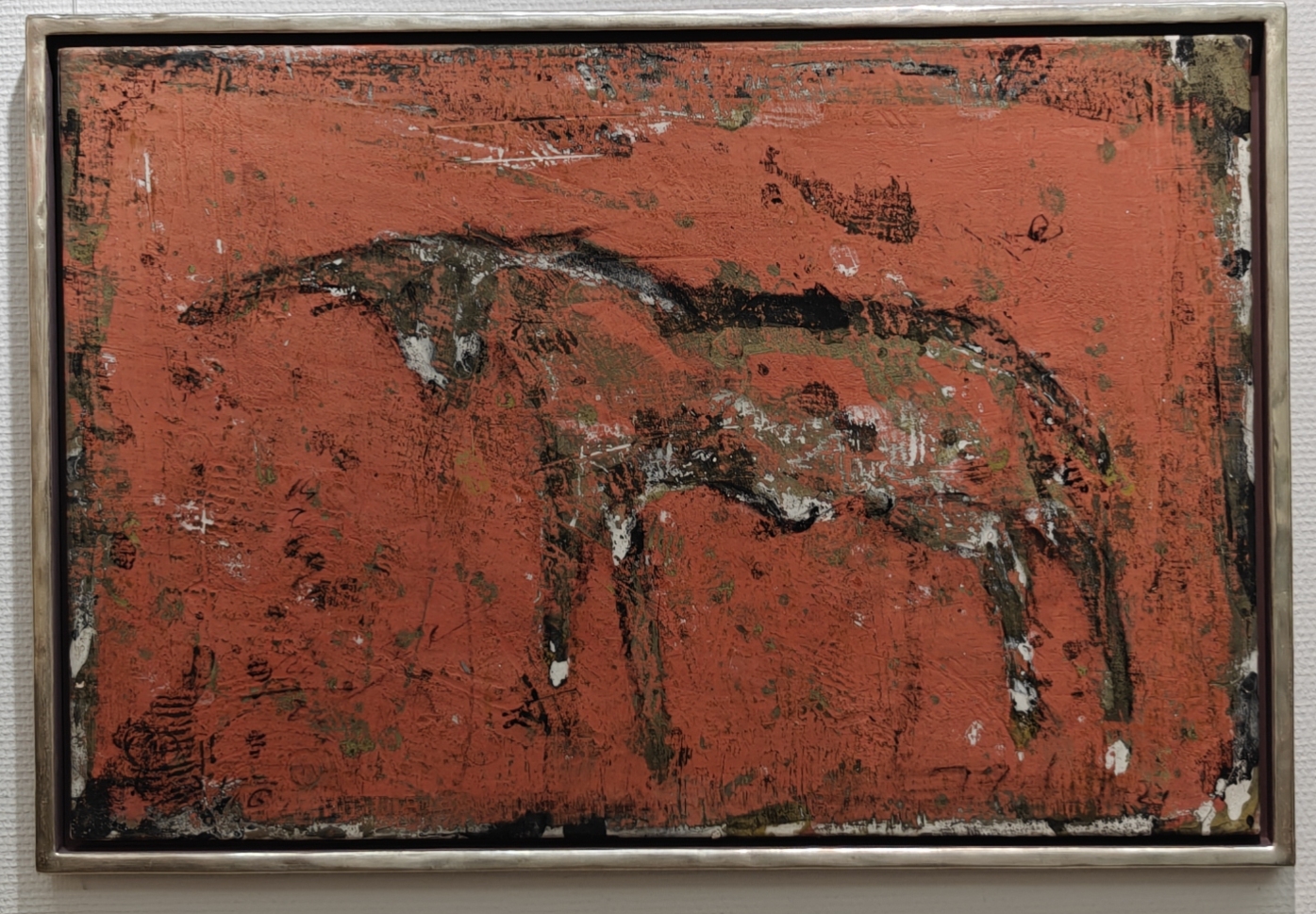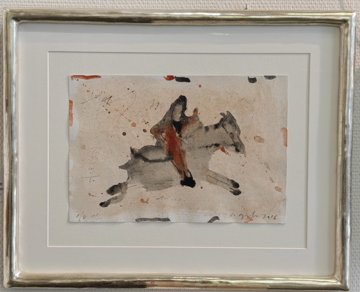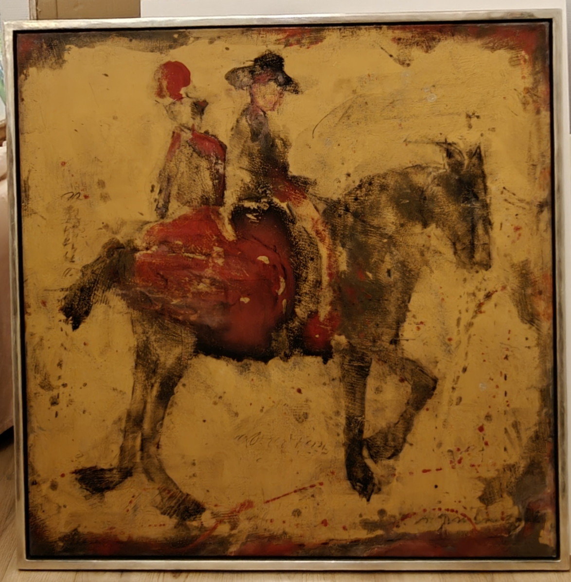 „Reiter“, Mischtechnik-Unikat mit Blattgoldrahmen 43×53 cm
