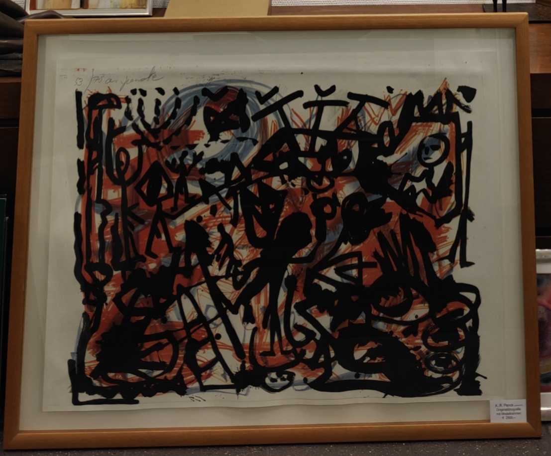 Lithografie auf Bütten ca. 70×100 cm. Mit Holzrahmen handsigniert und nummeriert 53/79